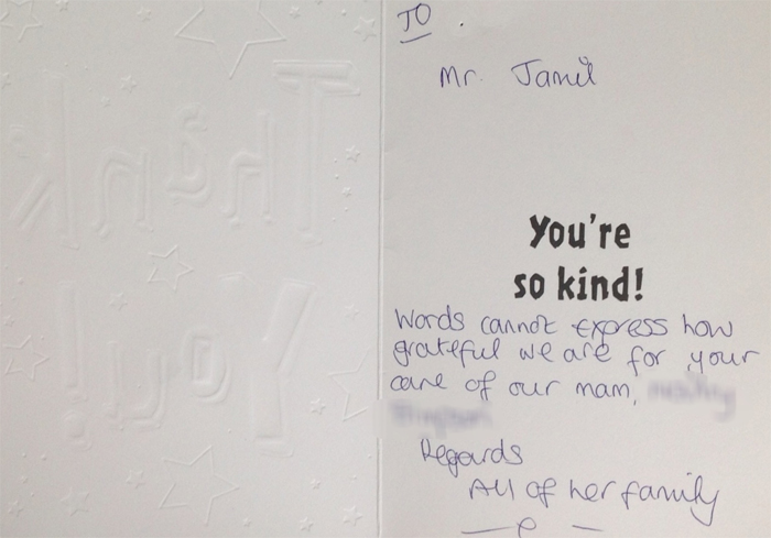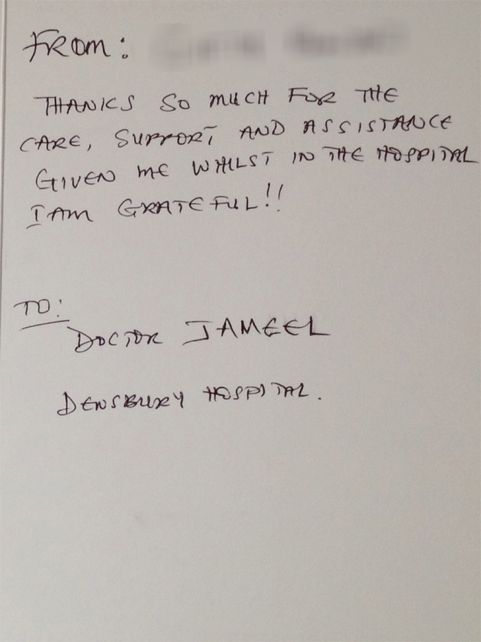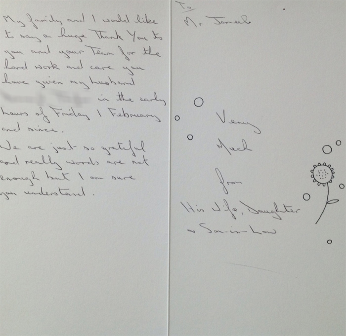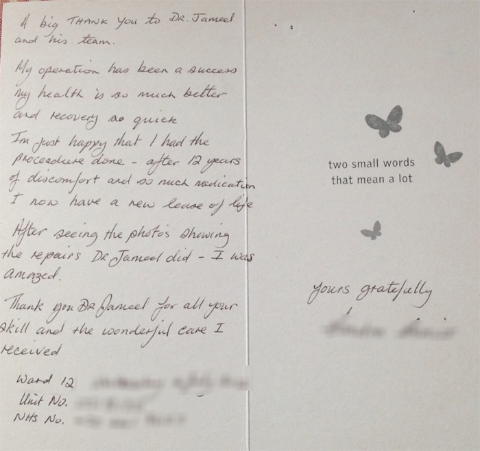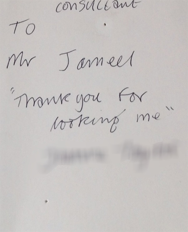 Letter of appreciation written by Dr. Jameel’s patient during his practice in uk